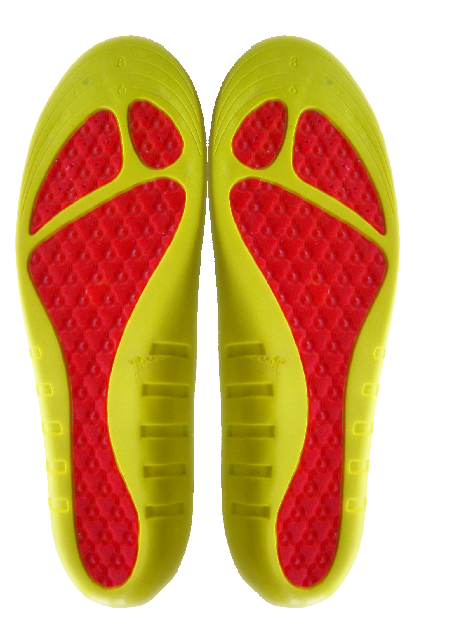 • Polyurethane cushioning for shock absorption and energy return.
